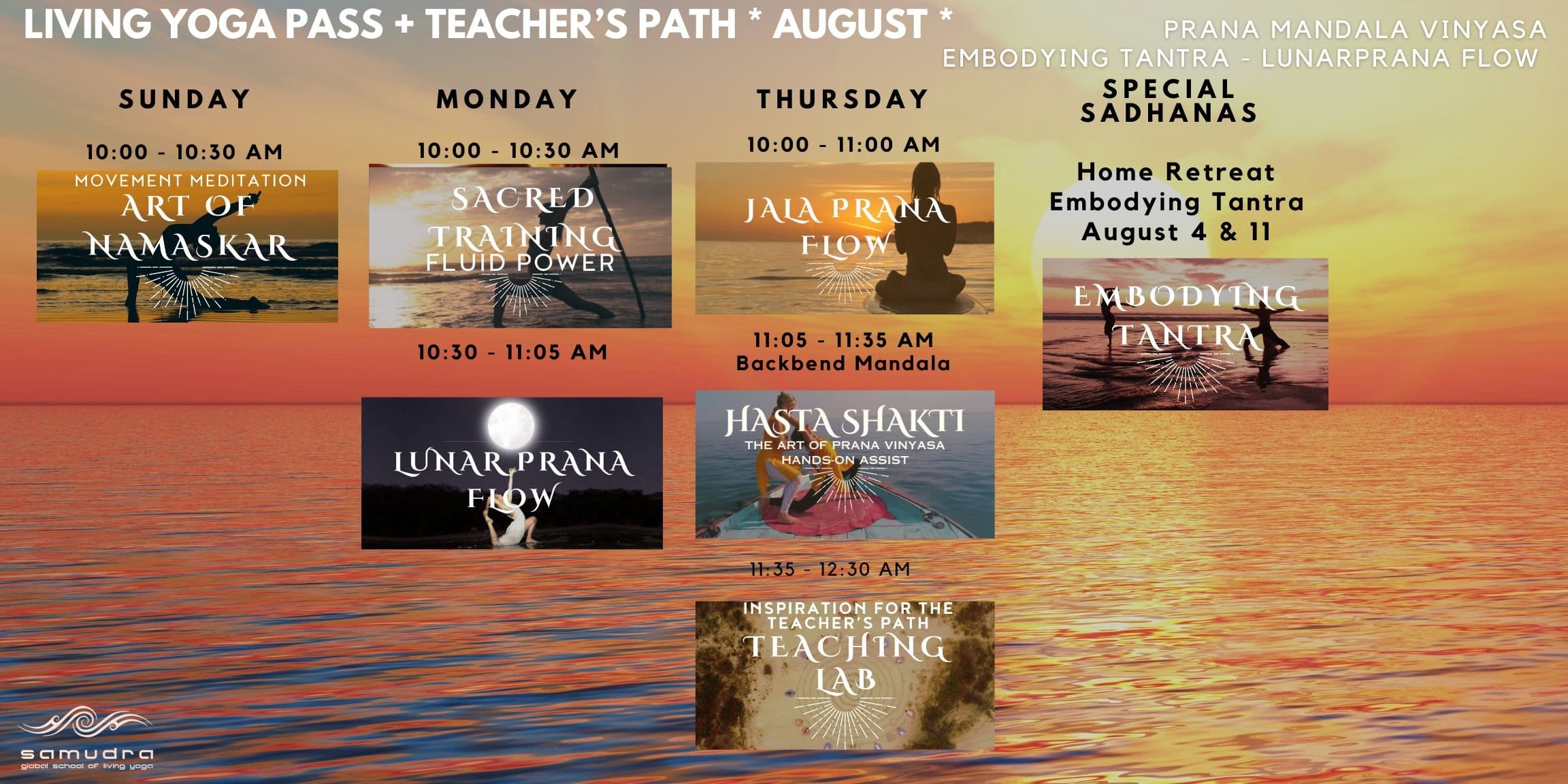 Experience the unfolding mandala of Classical Surya and Chandra Namaskar and the evolution of over 50 Prana Flow Namaskars in pathways that have evolved from these roots as movement alchemy.